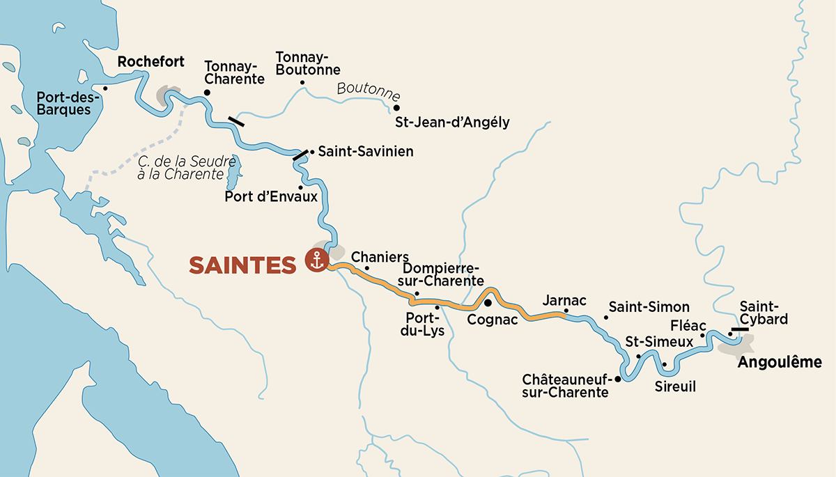 Bei den von unserem Abfahrtshafen Saintes angegebenen Strecken handelt es sich lediglich um Vorschläge. Denken Sie daran: Sie können während Ihrer Reise Halt machen, wo immer Sie möchten.