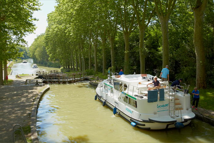 Commençons avec un petit rappel technique : qu’est-ce que concrètement une écluse ? Il s’agit d’un ouvrage d’art hydraulique intercalé entre deux plans d’eau de hauteurs distinctes. Il permet de relier ces deux plans d’eau à un même niveau, grâce à la manœuvre d’éléments qui sont mobiles au sein de l’écluse. Le but d’une écluse est de permettre à un bateau d’enjamber un autre cours d’eau alors qu’il navigue sur un canal. Les écluses sont courantes sur les canaux de tourisme fluvial et vous aurez forcément à en traverser lors d’une croisière en bateau sans permis. A titre d’exemple, les écluses du canal du Midi sont au nombre de 63, pour une longueur totale du canal de 241 km.