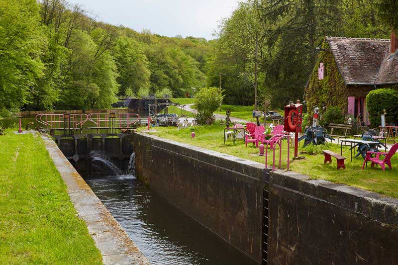 Pour que vous puissiez franchir d’importants dénivelés sur une courte distance avec votre bateau de location sans permis, des ingénieurs ont imaginé une succession d’écluses. Elles sont très rapprochées, au point que nous l’appelons « échelle d’écluses ». Un parfait exemple d’un de ces surprenants ouvrages d’art est celle de Sardy. Elle comprend 16 écluses sur 3.5 km. En restant à bord de votre bateau sans permis, vous pourrez voir des maisons anciennement habitées par des éclusiers, et qui maintenant sont occupées par des artistes et artisans qui proposent des visites et expositions. Cette échelle d’écluses est visible à vélo également. Une voie verte a été aménagée le long du canal du Nivernais pour profiter du chant de l’eau et de la fraîcheur de la forêt. Elle s’étend sur 3.6 km du hameau de Port-Brûlé au village de Sardy-lès-Epiry.
